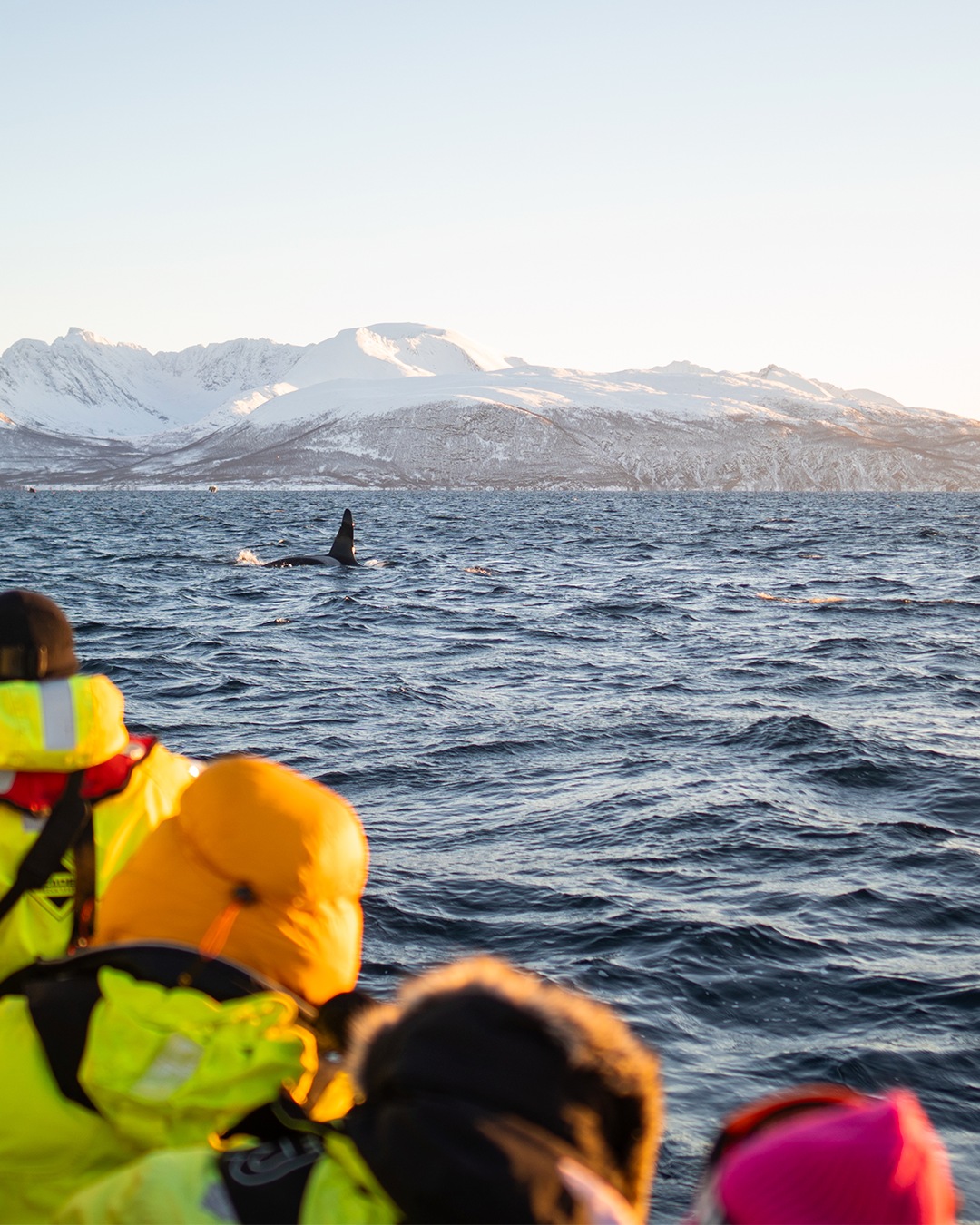 Warm clothes! You will be approximately 3 hours at sea. We therefore recommend that you wear several layers of wool, fleece and a sweater underneath. It is also good to bring a warm hat, a buff and good wind-proof gloves.